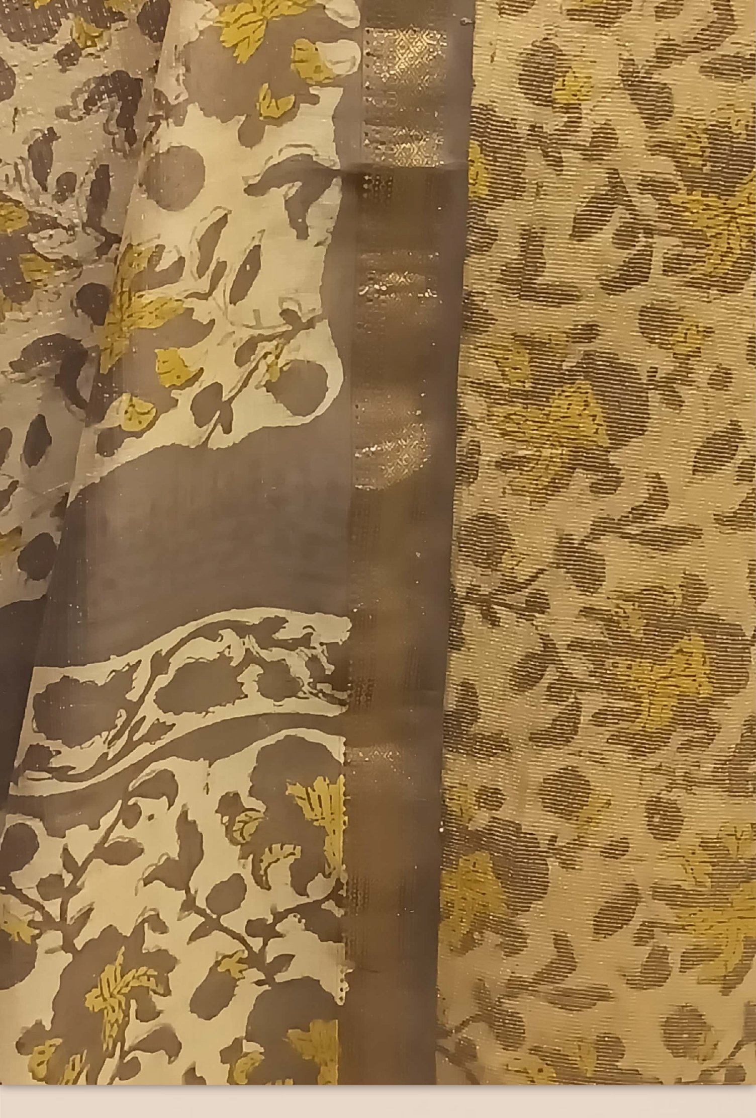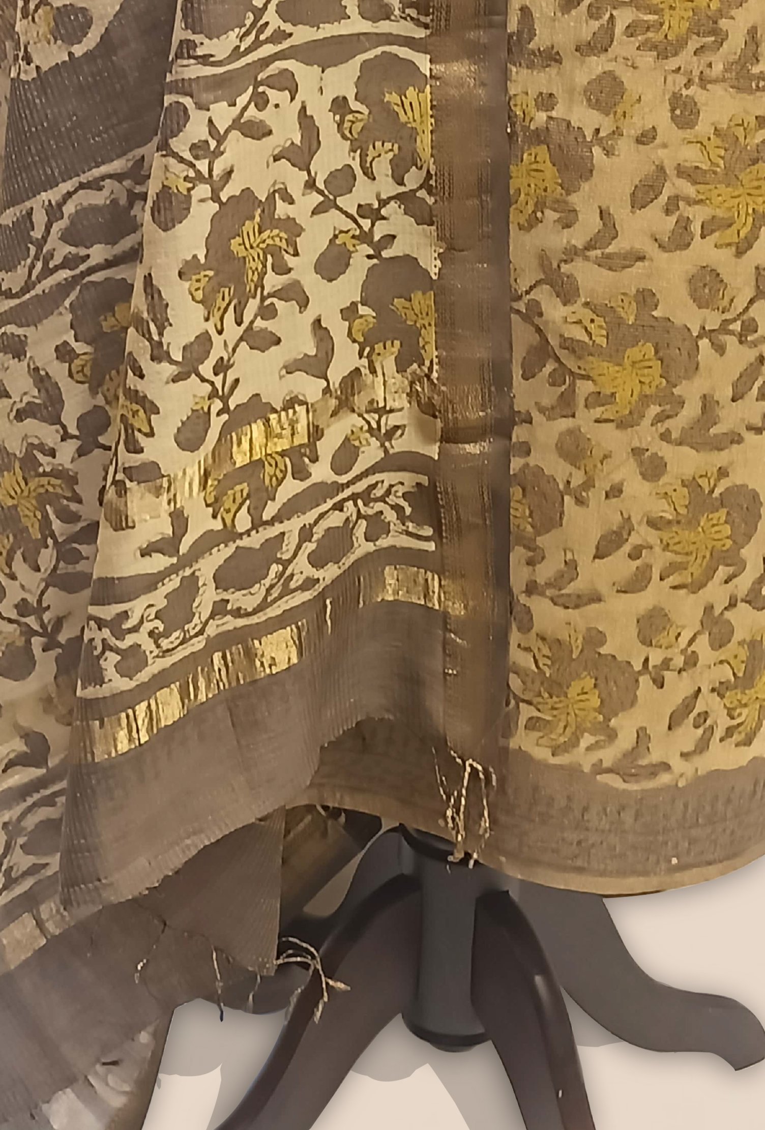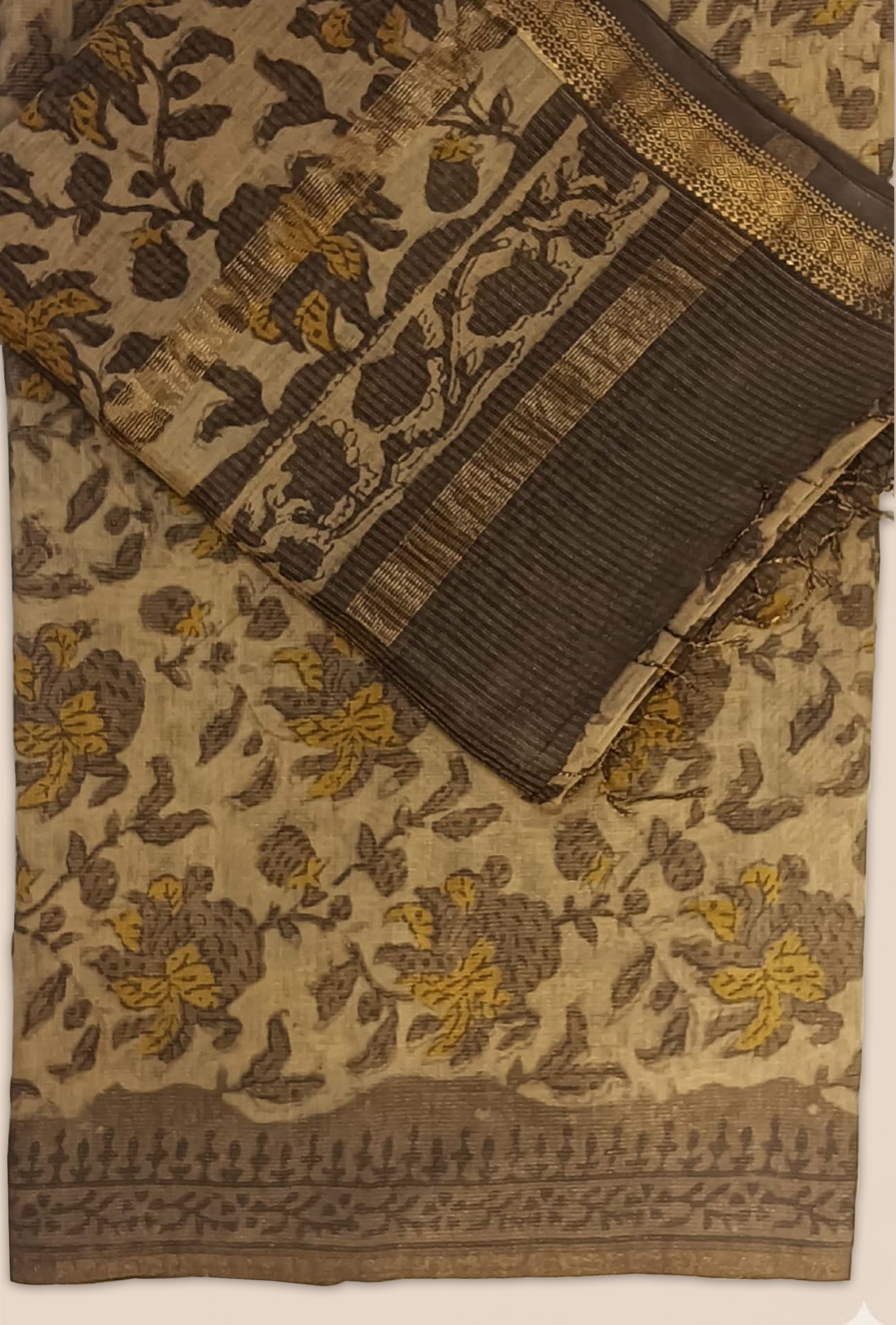 Maheshwari woven Suit 2 pcs – Beige-Brown Kurta with Mustard, Olive & Gold Accents Dupatta