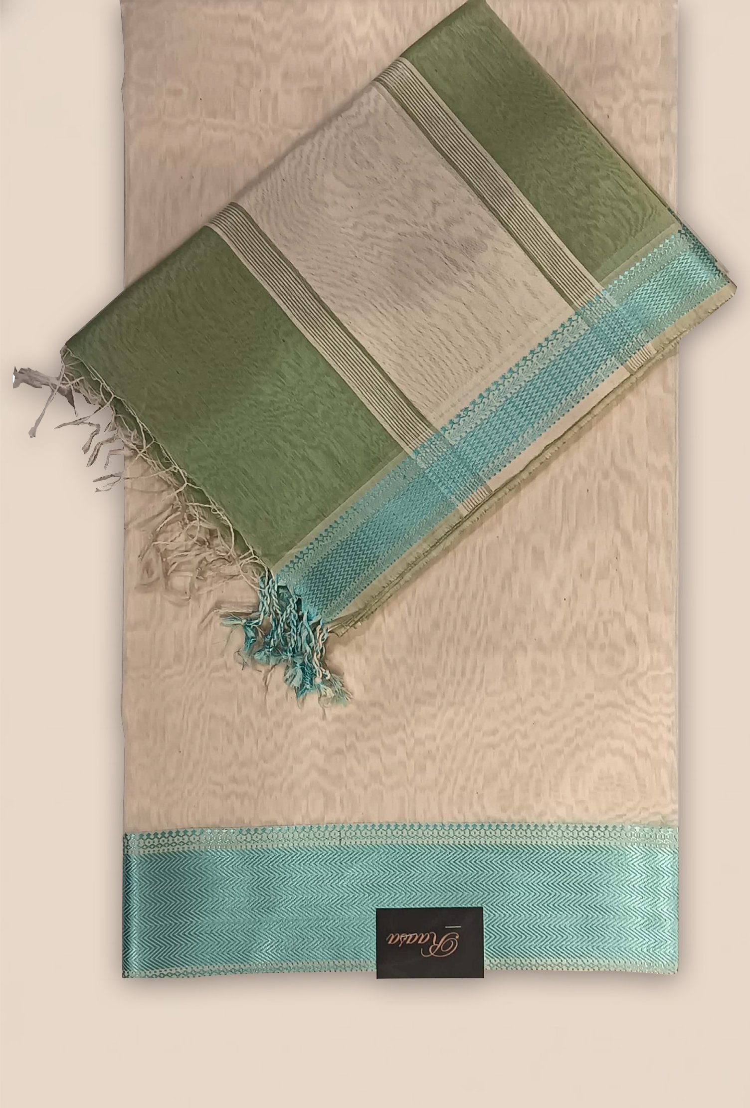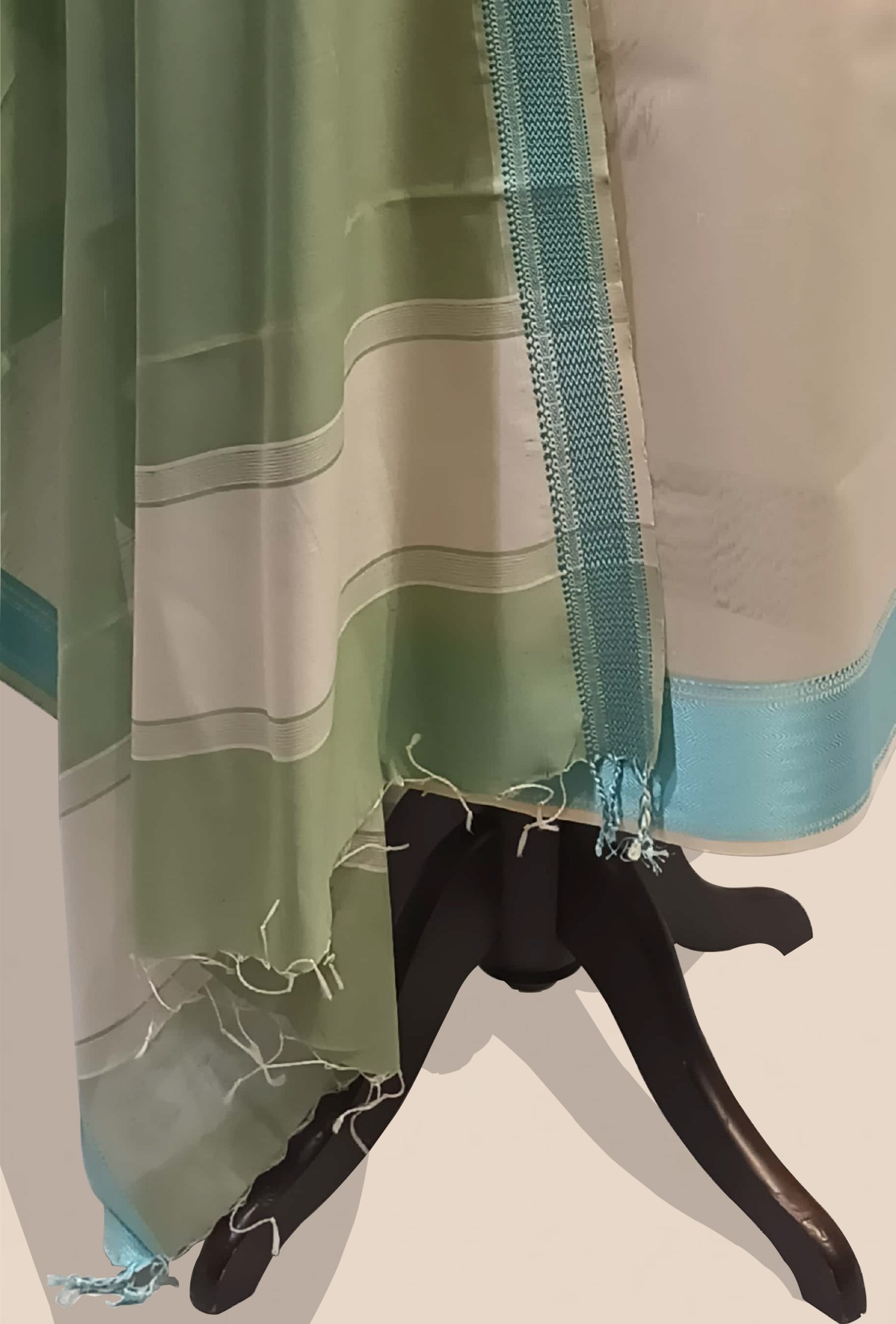 Maheshwari woven Suit 2 pcs – Beige-Cream Kurta with Sage Green & Aqua Blue Dupatta