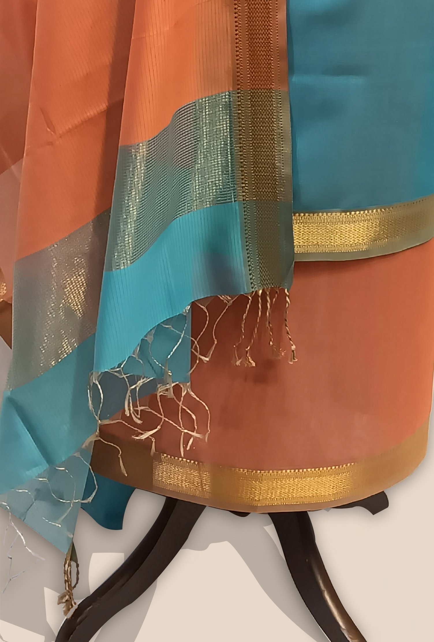 Maheshwari woven Suit 2 pcs – Teal Blue Kurta with Rust-Copper & Gold Dupatta