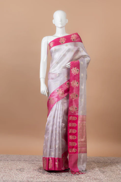 Neelkamal Banarasi Chanderi Silk – light grey or beige