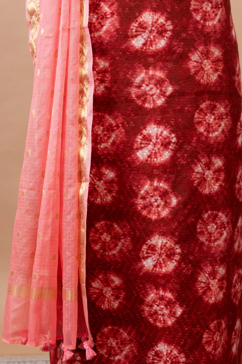 Vasanti Woven Chanderi Suit with chanderi duppatta & cotton bottom – Maroon