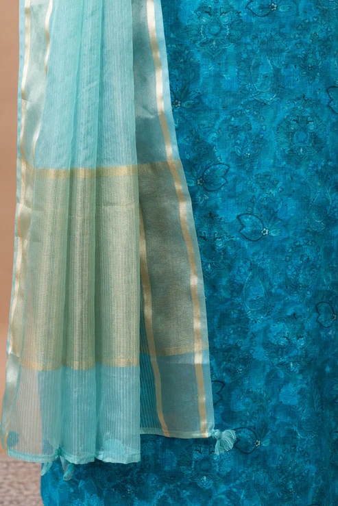 Tarang Printed Chanderi Suit with woven chanderi duppatta & plain bottom – Royal Blue