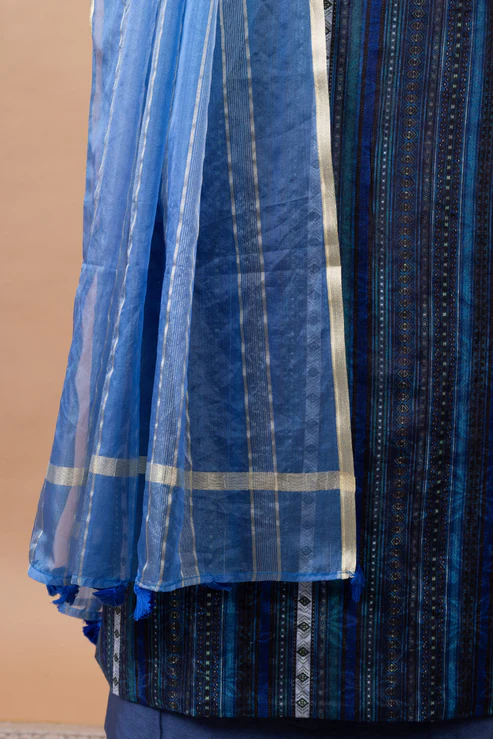 Tarang Printed Chanderi Suit with woven chanderi duppatta & plain bottom – Navy